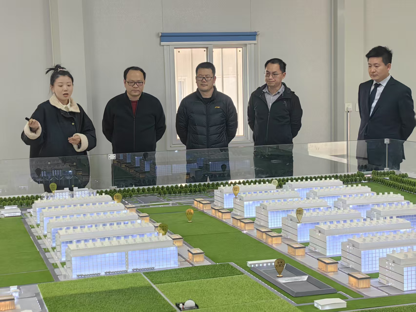 中牟产业园区工程建设人员详细介绍了项目区示范工程建设情况。项目区建设有独立的高标准畜禽无害化处理中心,该中心建设有配套冷库,引进了化制法处理设备及污水与废气处理设备等。